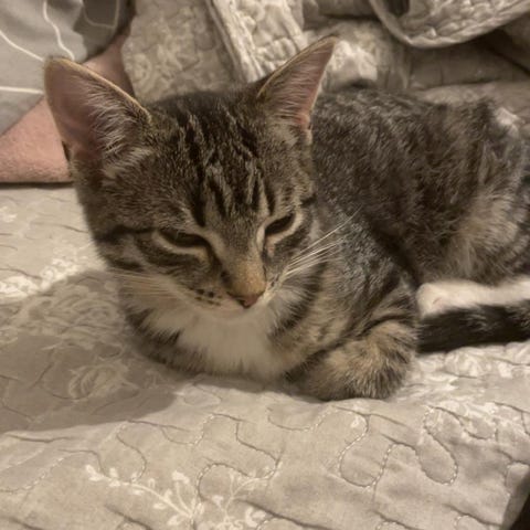 Kastrerad hankatt fem år gammal söker nytt hem. Snäll, tillgiven och en storjägare. Behöver bo på landet.