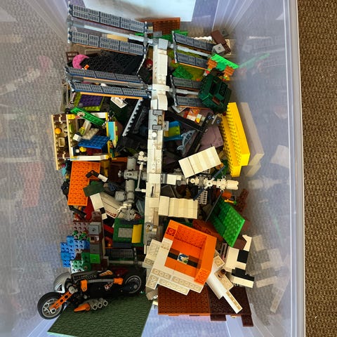 Stor låda med mycket blandat lego, innehåller rätt mycket.