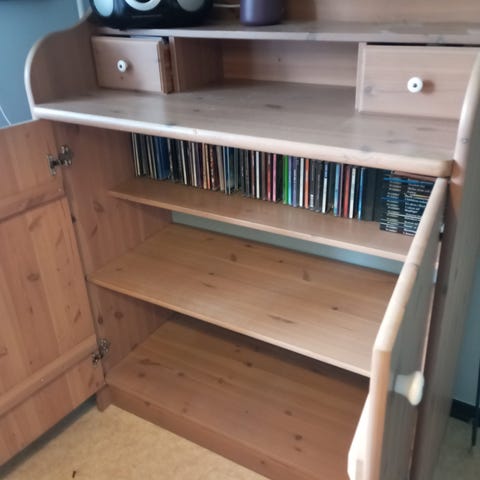 Trevlig möbel med glasdörrar för förvaring och exponering av något vackert eller betydelsefullt.