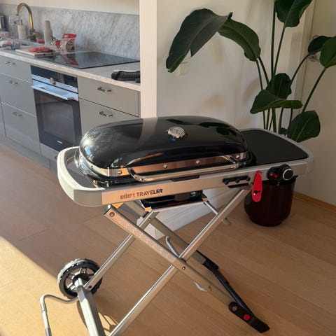 Weber Traveler gasolgrill med hopfällbart stativ.