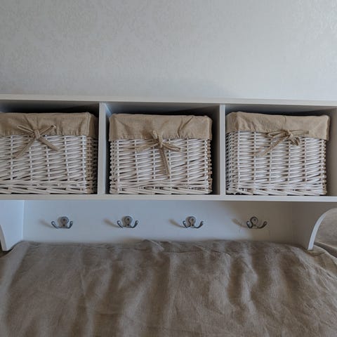 Vit trämöbel från Bruka design, med två stabila korgar i trä säljes. Det är en robust o fin möbel. Mycket bra skick, har använts på barnrum. finns för avhämtning i centrala Växjö.