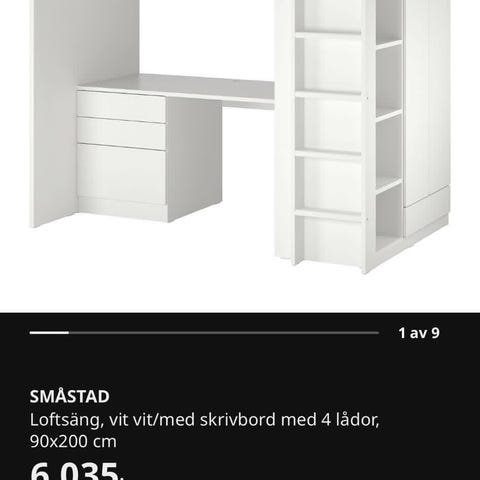 Den utrymmes-smarta kombinationen inkluderar en loftsäng, skrivbord med lådor, garderob med lådor och en bokhylla.