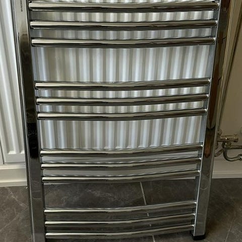 Parma handdukstork 35x135 i kromutförande. Handdukstorken är avsedd för montering i badrum eller andra våtutrymmen för torkning och uppvärmning av handdukar. Mått cirka 35x135 cm enligt specifikation på följesedel. Levereras enligt bilder, delvis skyddad med bubbelplast.