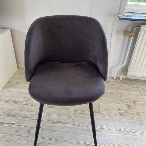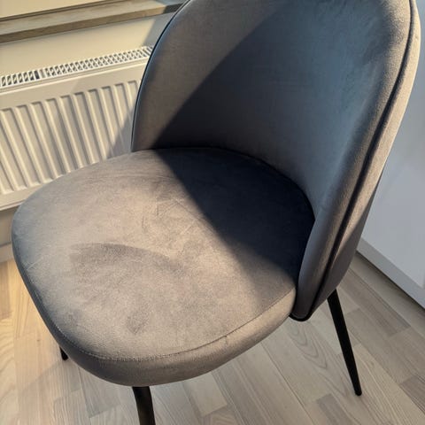 2 stolar från Mio i grått sammetstyg med vadderad sits och rygg i fint skick.