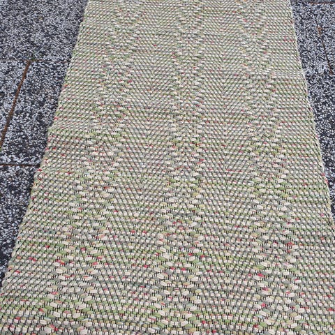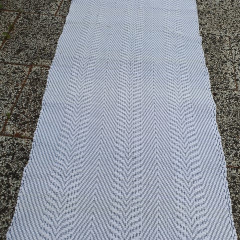 Trasmatta . Vävd i ax mönster i gult och vitt inslag. Svart varp.Ej använd.