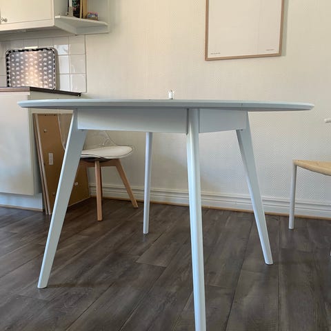 Bordsskivan har sprickor. Döljs med duk eller för den händige/byt bordsskiva.