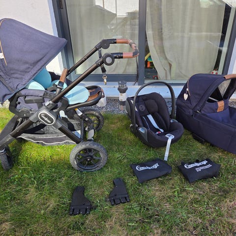 Till vagnen hör en ståbräda av annat märke med sits och handtag som kan fästas bak på chassit för medåkande barn. Passar för vardagsbruk och promenader där man behöver plats för ett sittande barn i vagnen och ett större barn på ståbrädan.