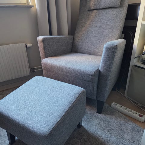 Säljer av min Strandmon IKEA fåtölj med tillhörande fotpall då den blivit överflödig i vårt hem. Den är i gott skick och kan hämtas i Vänersborg.