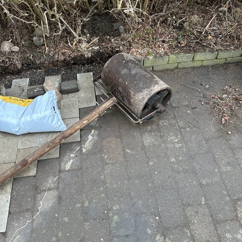Välten har handtag i metall för manuell användning och kan fyllas via öppning i sidan för att öka vikten vid behov. Lämplig för jämning och packning av jord- och gräsytor i trädgård och på gräsmatta.