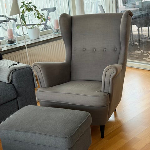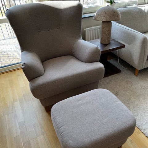 Strandmon i Norvalla mörkgrå med tillhörande fotpall