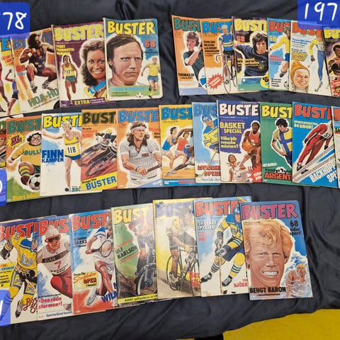 Buster serietidningar hela årgång 1984, alla 26 nummer. Omslagen är i gott skick. Nostalgi på ett väldigt stort sportår! Lämpliga för den som samlar på serietidningar eller är intresserad av sport. Som födelsedagspresent till nån född 1984 t ex?