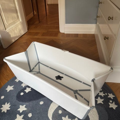 Stokke Flexi Bath är en hopfällbar badbalja lämplig för barn från födseln och upp till 4 års ålder. Den hopfällbara designen gör den enkel att förvara och praktisk att använda både hemma och på resan, vilket uppmuntrar till fler mysiga badstunder tillsammans. Utrustad med halkskydd i botten och värmekänslig badkarspropp.