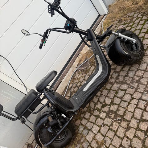 Elektrisk trehjulig scooter med sadel. Den har en lite bredare fotplatta på båda sidor för att vara stabil när man sitter och kör. Sadeln går också att ta bort så man kan använda den som en stående elscooter. Perfekt för personer som vill ha mera stabilitet än man får med en tvåhjulig scooter.