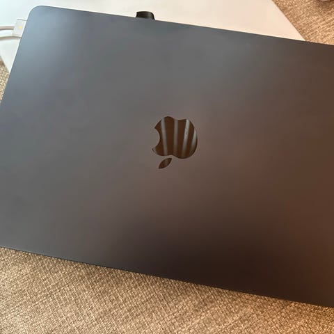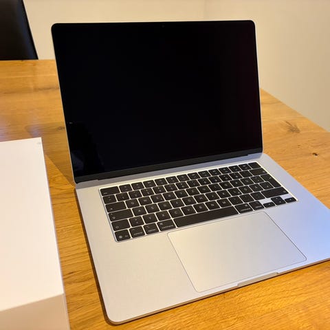 Mycket fint skick, ser i stort sett ut som ny. Extrautrustad med 512 GB hårddisk och 35 W laddare med dubbla USB-C.
