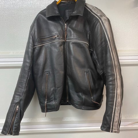 Snygg Mc jacka i skinn modell Clyde, lite använd. Inga skavanker. Fabrikat 4bikers i antikbehandlat brun skinn som ger snygg retro look. Storlek XL.