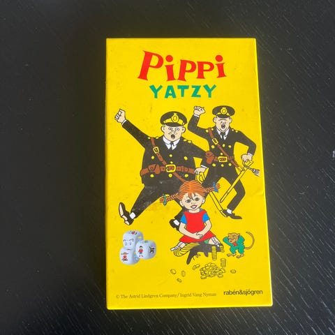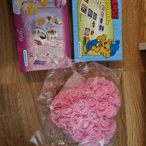 Pippi Långstrump memo och yatzy-spel och rosa hjärta med rosor