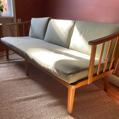 Jättefin nätt soffa i retro med fint grått tyg från IKEA modell Ekenäset. (Mått längd 175 Djup 80 höjd 75) Finns i Hägersten
