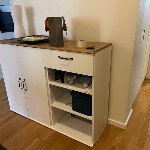 Vit skänk med träskiva.