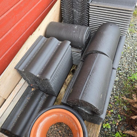 Helt nya Benders platta takpannor ”Carisma” i svart färg. Levereras på pall enligt bilden. Passar för yttertak på villor, fritidshus eller liknande byggnader och ger ett avskalat och snyggt intryck.