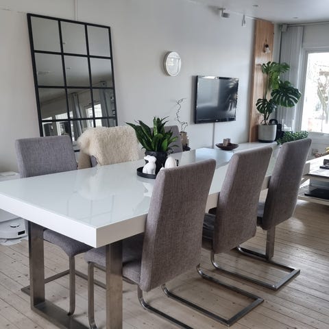 Passar som matbord i kök eller vardagsrum och ger en ljus och neutral bas som är enkel att kombinera med olika typer av stolar och inredningsstilar.