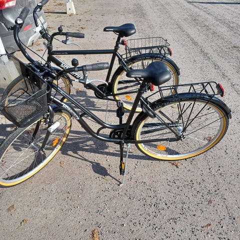 Hej >Två 28-tums cyklar säljes – en herrcykel och en damcykel, båda med växlar.