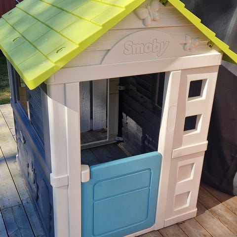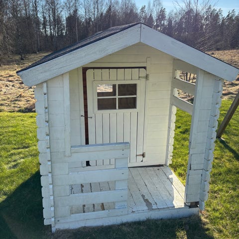 Här är huset i nyskick: https://www.jollyroom.se/fritid-hobby/utelek/lekstugor/woodlii-lekstuga-vit-rosa
