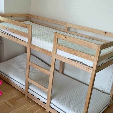 Fiffig våningssäng som kan användas som två separata sängramar.