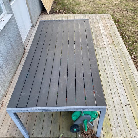 Säljer ett stabilt och rymligt trädgårdsbord i teak – ett tåligt och klassiskt material som passar perfekt utomhus. Bordet har plats för många gäster och är perfekt för sommarens middagar och umgänge.
