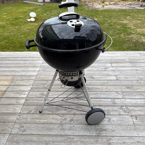 Weber klotgrill för kol i svart färg. Komplett för att grilla, två stålborstar, eltändare, en påse med briketter.