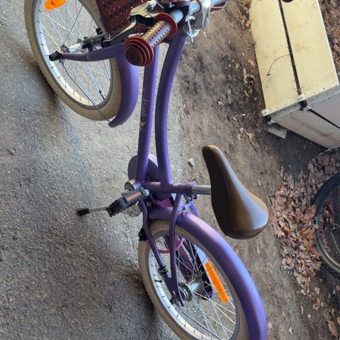 Fin vit tjejcykel med rosa och blommiga detaljer i gott skick ( knappt använd då urvuxen snabbt ) Fotbroms, handbroms och inga växlar
