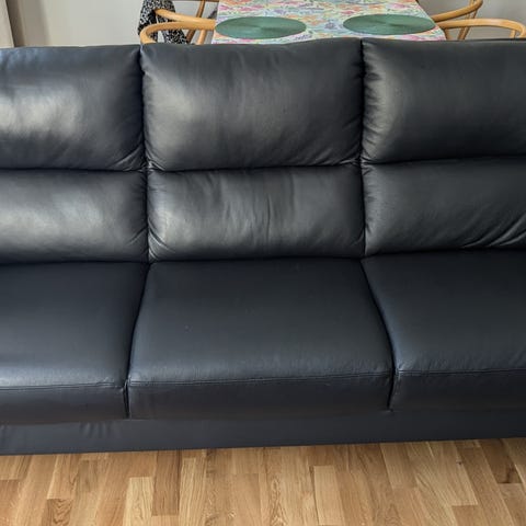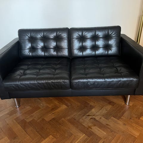 Säljer en fin 2-sits skinnsoffa Landskrona från IKEA.