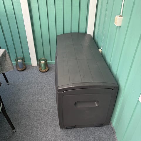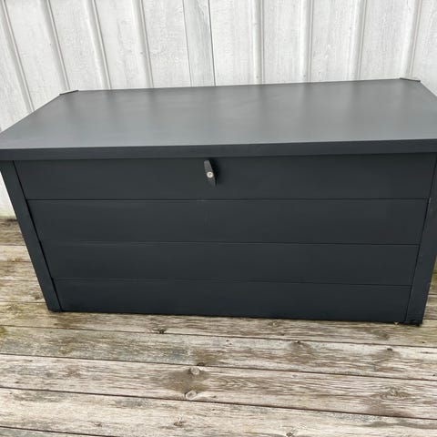 Säljer en praktisk och stabil dynlåda för uteplats, altan eller trädgård.