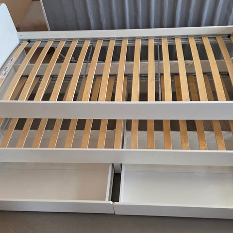 ”Släkt” sängram med undersäng och lådor i ett bra skick säljes.