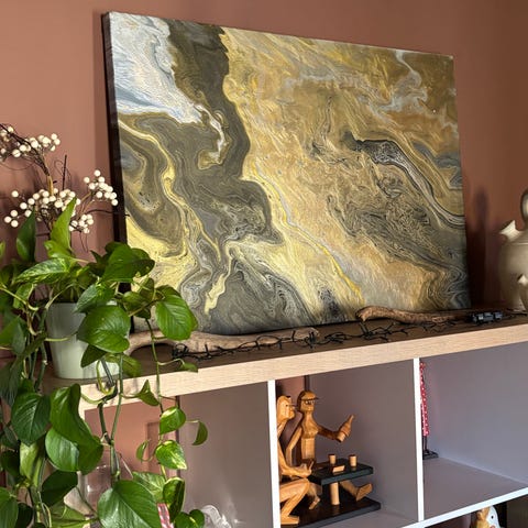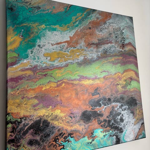 Fint Konstverk/målning i akrylfärg på Canvasduk i träram 100X100cm Djup:3,7cm