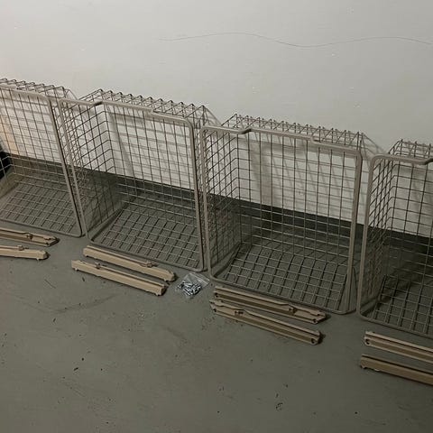 Lådsystem och trådbackar metall grå