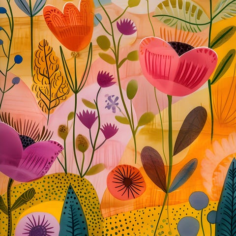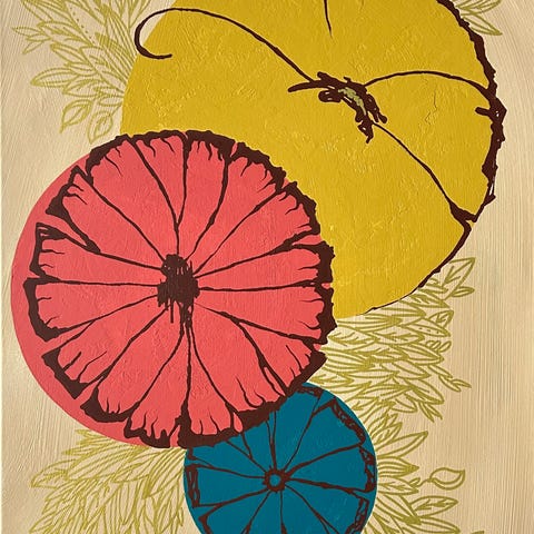 Konsttryck abstrakt solstrålemotiv flerfärgad