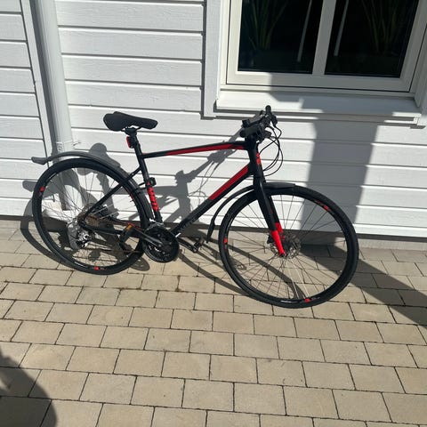 Säljer min brorsas gamla cykel då jag behöver pengar till att fixa moppen. Jag vet inte så mycket om cykeln men den kanske har pys punka eller så är det bara att den stått ett tag. Nyckeln till låset på cykeln är borttappad men låset är inte låst så det går att cykla med den. Lampan fram funkar men lampan bak tror jag har slut på batteri.