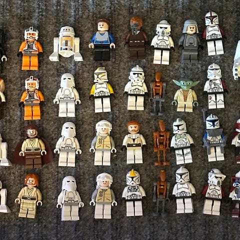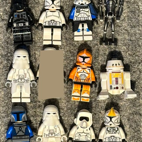 Lego Star Wars blandade set som är nerplockade kan inte garantera att alla set ät kompletta eftersom de är köpta såhär. Förra ägaren sa att de var kompletta men osäker till detta. Följande set ingår At-At-27588, Republic Frigate-7964, The Twilight-7680 och At-Ap- Walker-7671