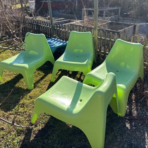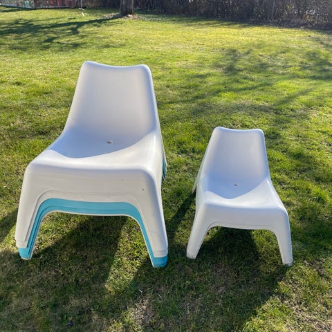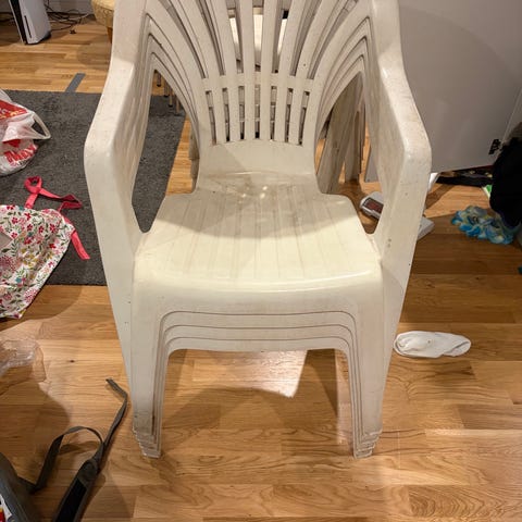 2 st vita plaststolar i utmärkt skick, har stått inne mest.