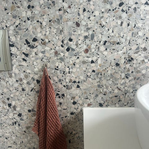 Säljer äkta terrazzo plattor som blev över efter renovering. Mått 25x25 cm. Cirka 2,3 cm tjocka.