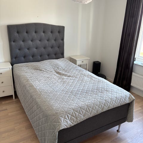 Sänggavel i grå textil!