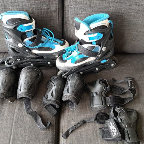Skydd av storlek M ingår, knä, armbågs samt handledsskydd finns.