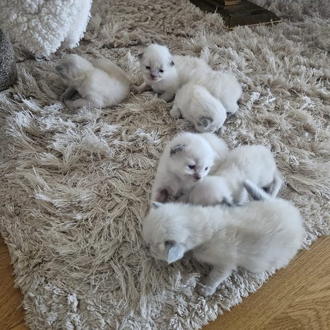 Hej vi har kattungar 4 st 3 killar o en tjej tycker en av dom är lite svår och se på, den minsta hon/han har blivit lite bortknuffad men tar ingen sig för var dag för dom äter vanlig mat nu ..