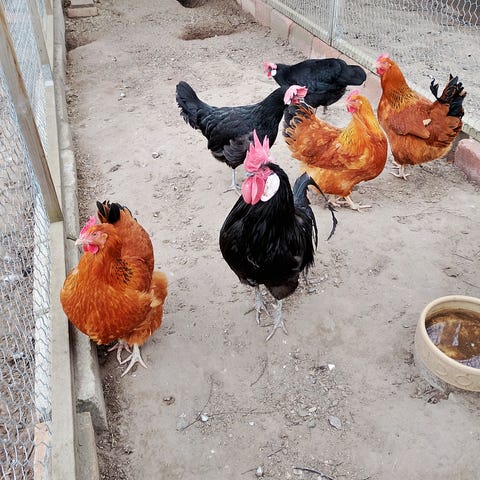 Extremt fluffiga och tama amerikaska silke hönor och tuppar