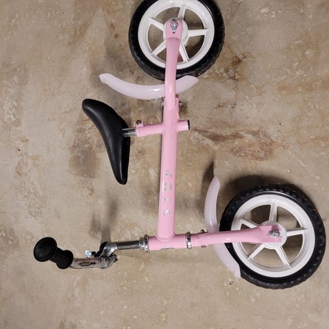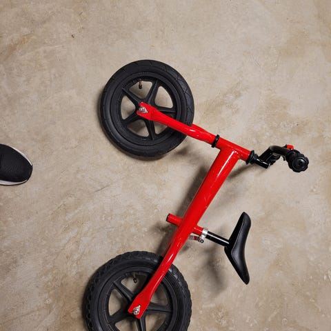 Balanscykel i använt skick men inte rostig. Liten skada på sadeln