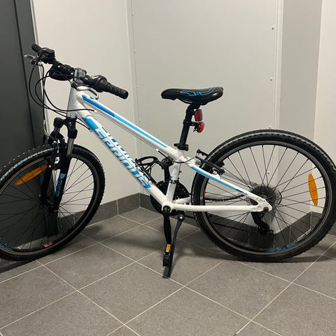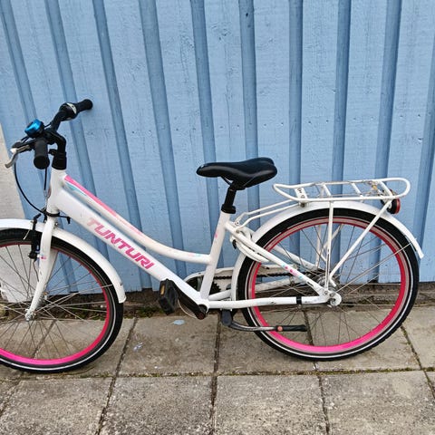 3-växlad vit barncykel 24" från "Made". Cykeln har 24-tums hjul, pakethållare bak, skärmar fram och bak samt fotstöd. Utrustad med handbroms fram och fotbroms bak samt upprätt styre för bekväm körställning. Har lampa fram och bak. Passar barn som vuxit ur mindre barncykel och behöver en cykel i 24-tumsstorlek för vardagscykling till skola och fritidsaktiviteter.