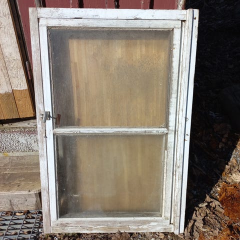 4 st 2-lufts, välvda stallfönster med karm, kärnvirke tidig 1900-tal. Karmyttermått ca 155 x 110 cm. Originalbeslag. Ingen röta, behöver färg- och kittarbeten, några glas sönder. Reservglas ingår. Endast avhämtning.