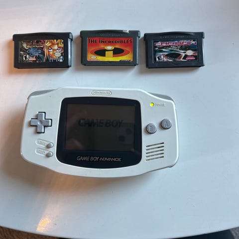 Game Boy Advance, svensk utgåva, komplett med kartong och alla papper. Se bilderna. Legat i en garderob i åratal. Startar upp som den ska, jag upplever att knapparna känns bra, har dock inget spel att testa med.
