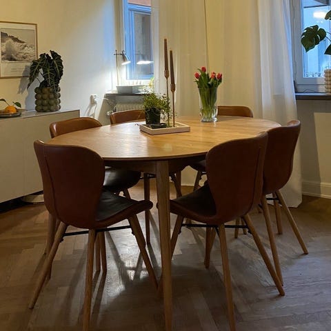 Bordet får inte att köpa från Mio längre, men här är länken med specifikation. https://www.mio.se/p/plaine-matbord-180x95x74-cm/218573?id=M2137208