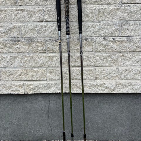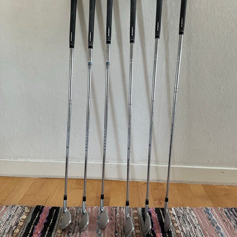 Cleveland Tour Action 900 wedgar i 50, 56 & 60. De är synligt använda. Dock inga stora report eller jack. Greppen är ok men behöver troligen bytas innan säsongen är över.